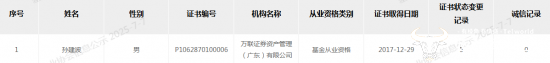 孙建波任万联资管副总经理 官网还未更新信息?